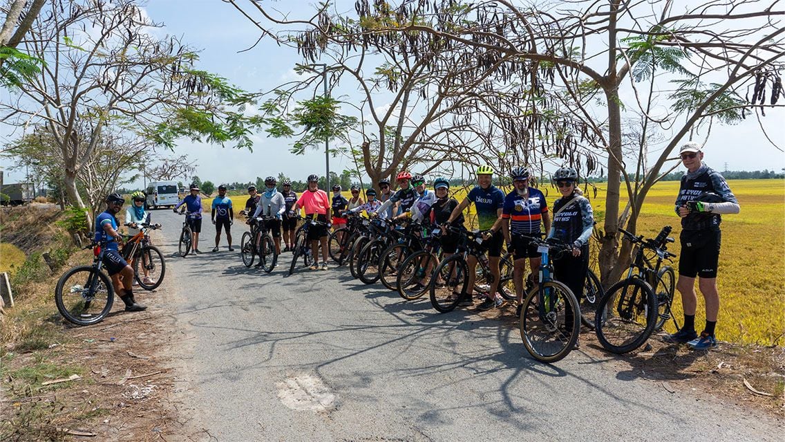 In Vietnam’s Mekong Delta, you’ll pedal through lush orchards, coconut groves, and winding canals connecting Long Xuyen, Vinh Long, and Ben Tre. The journey ends in Ho Chi Minh City, where the Mekong’s countless tributaries meet the sea — and your cycling odyssey concludes.