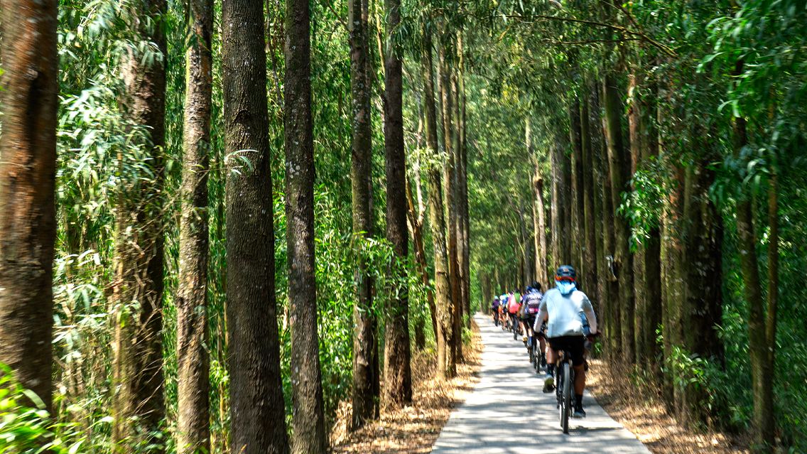 Discover a charming route that winds through peaceful rural landscapes, gentle rolling hills, and serene coastlines. You’ll cycle along smooth asphalt roads and rustic dirt paths that meander past lush rice fields and quaint villages. The quiet backroads beside rivers offer a perfect, less-traveled path—narrow lanes with just a touch of sandy earth—inviting you to immerse yourself in the calm and beauty of the countryside. This scenic journey promises a delightful mix of nature and authentic local life, perfect for every cycling enthusiast seeking adventure off the beaten path.