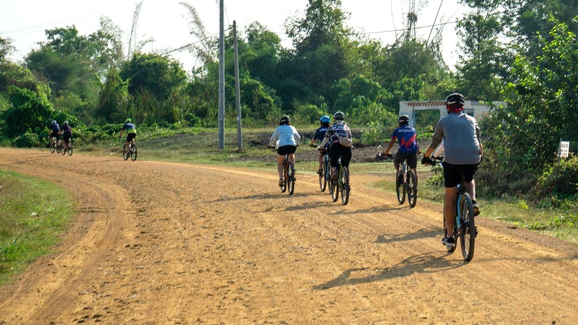 After a hearty breakfast at the hotel, we set off on an exciting cycling journey of 75 km that will take us to the inland border between Cambodia and Vietnam. Along the way, you’ll have the chance to immerse yourself in the everyday rhythms of rural Cambodian life — passing through vibrant villages where locals tend to their fields and children greet us with warm smiles.
